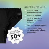 Resiste fino a 12 ore facendoti sentire sicura e protetta. Se sei fuori casa e desideri cambiarti, ricordati di portare con te un sacchetto impermeabile: sciacqua, chiudi nel sacchetto e una volta a casa lavala in lavatrice!