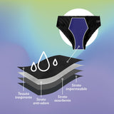 La mutanda mestruale è universale, adatta a tutti i flussi, leggeri, medi o abbondanti. Non avrai bisogno di nient’altro, se non di una doppia mutanda da cambiare a metà giornata. Se hai un flusso abbondante o emorragico, abbinala ad un secondo metodo di protezione, per esempio la coppetta mestruale Ayay.