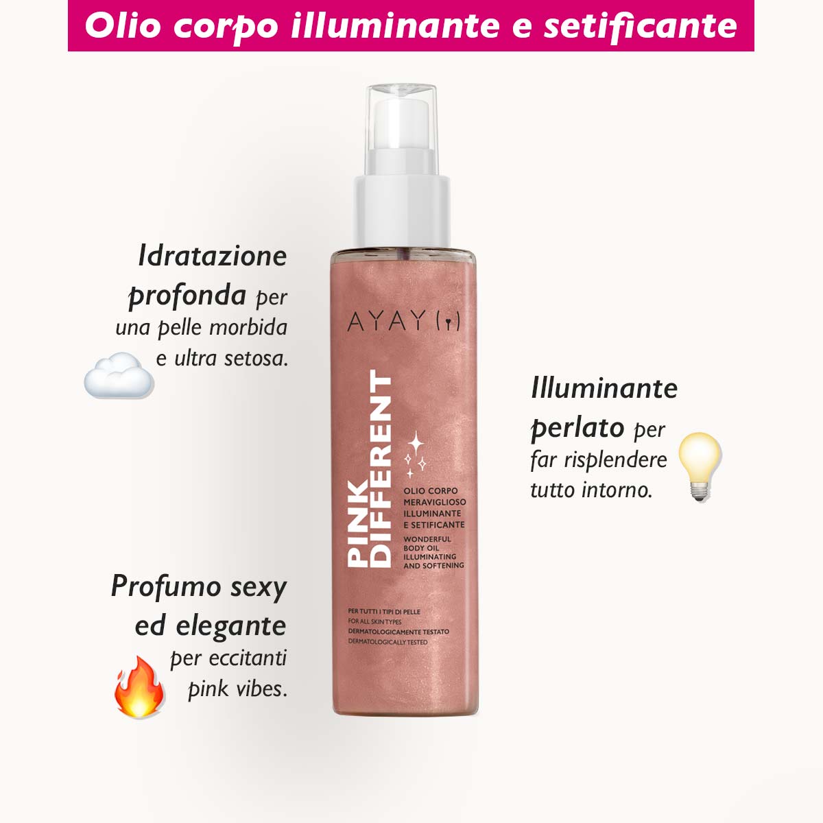 Pink Different - Olio corpo profumato illuminante di mandorle dolci